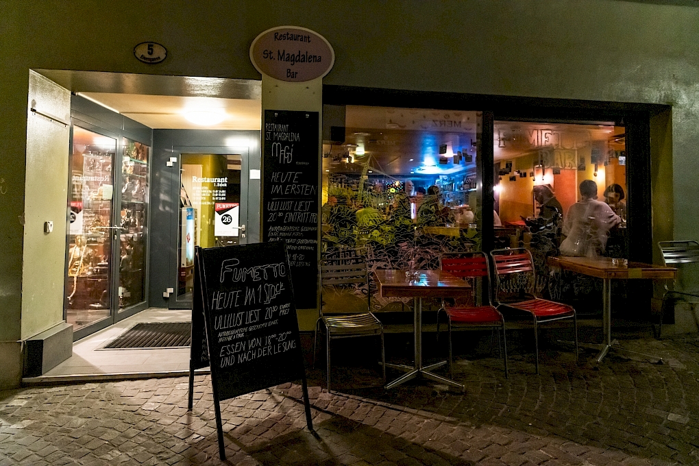 After a day of comics head on over to the Magdi bar and make yourself at home at the Festival’s hang-out venue. Draw, talk, drink, enjoy something from the Fumetto menu. A long day at the festival couldn’t end any better than this.